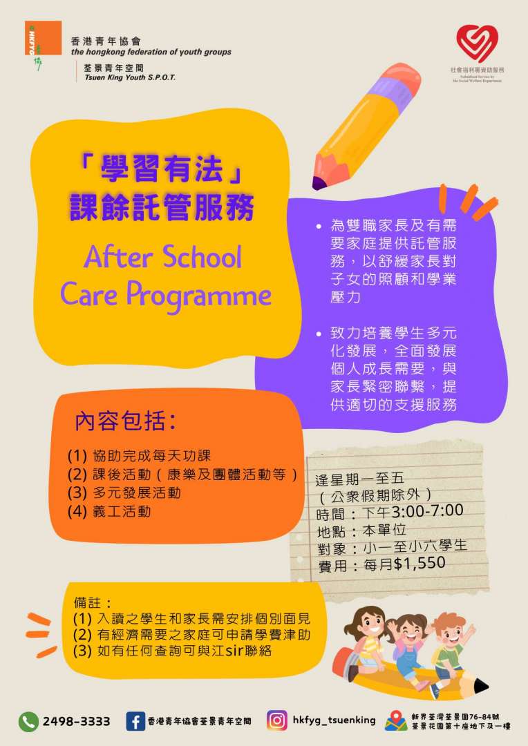 1. 綜合社會保障援助 (綜援) 計劃下低收入家庭或參與「自力更生支援計劃下的就業及支援服務」人士 (綜援受助人士需向所屬的社會福利署 (社署) 社會保障辦事處申請特別津貼資助為課託服務之用);